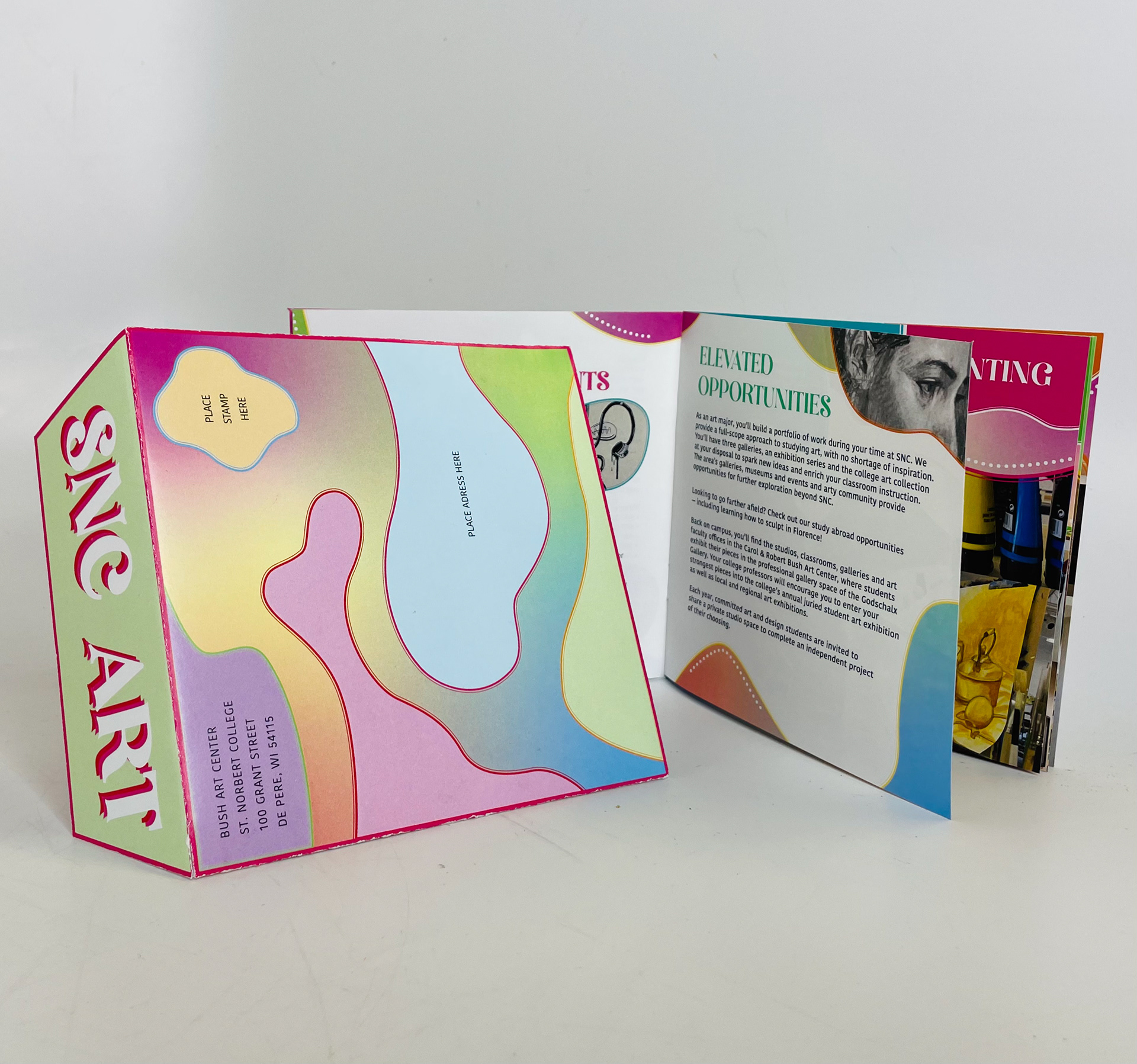 For this project, I designed a promotional booklet for the St. Norbert College Art Department. The purpose is to heighten the interests of perspective students.